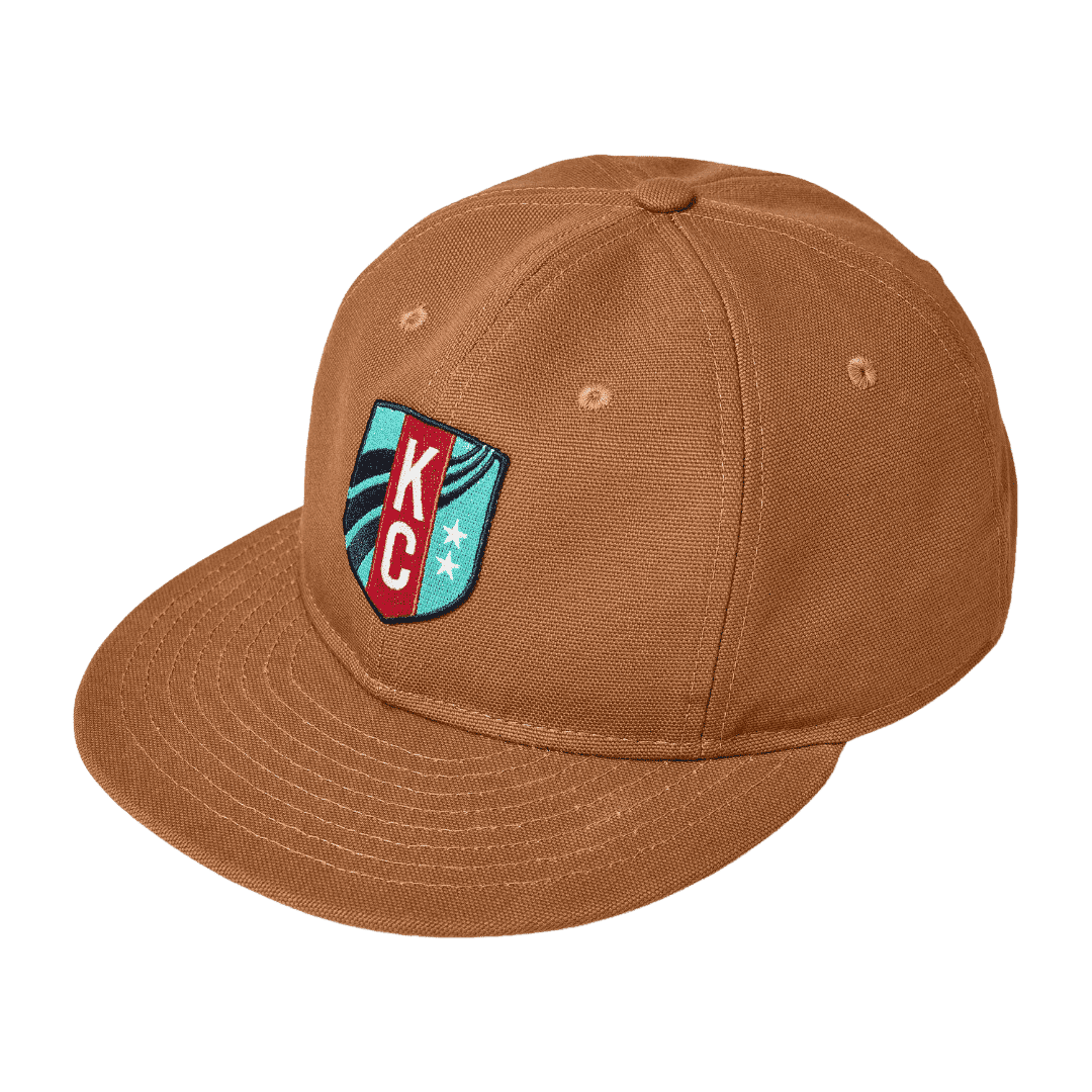 This stylish flatbill cap features a sleek camel-colored cotton design and the KC Current crest on the front. With its adjustable fit and breathable fabric, it offers both comfort and durability.