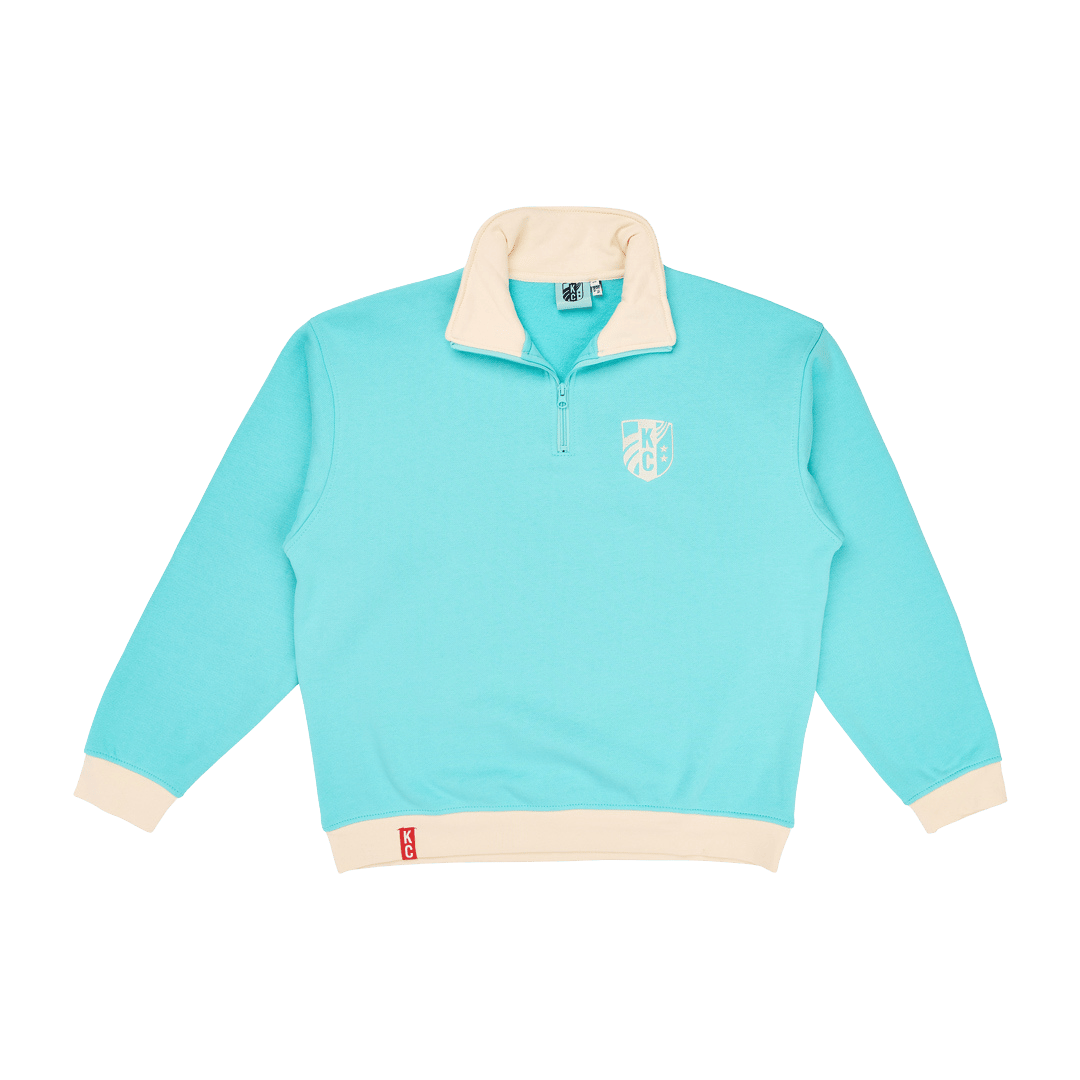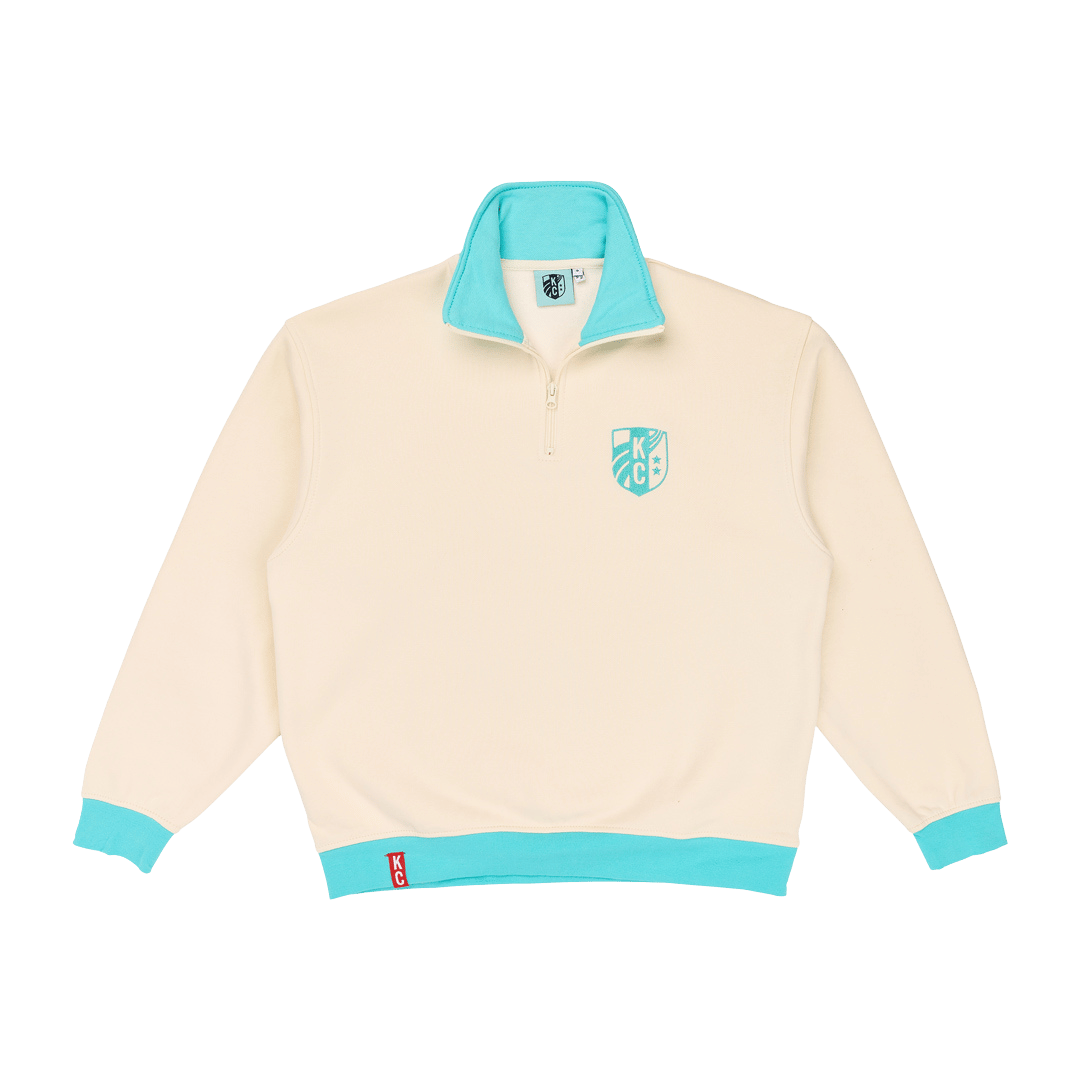Rep your team in all-day comfort with the KC Current Unisex Baselayer Relaxed Half Zip. Designed with a cream/teal body and bold teal/cream accents at the collar, cuffs, and hem, this versatile pullover blends classic style with team pride. The soft, breathable fabric makes it ideal for layering, training, or casual wear, while the embroidered KC Current crest on the chest shows your support wherever you go. The half-zip design allows easy temperature control and a relaxed fit for maximum comfort. Perfect for match days, workouts, or everyday streetwear.
