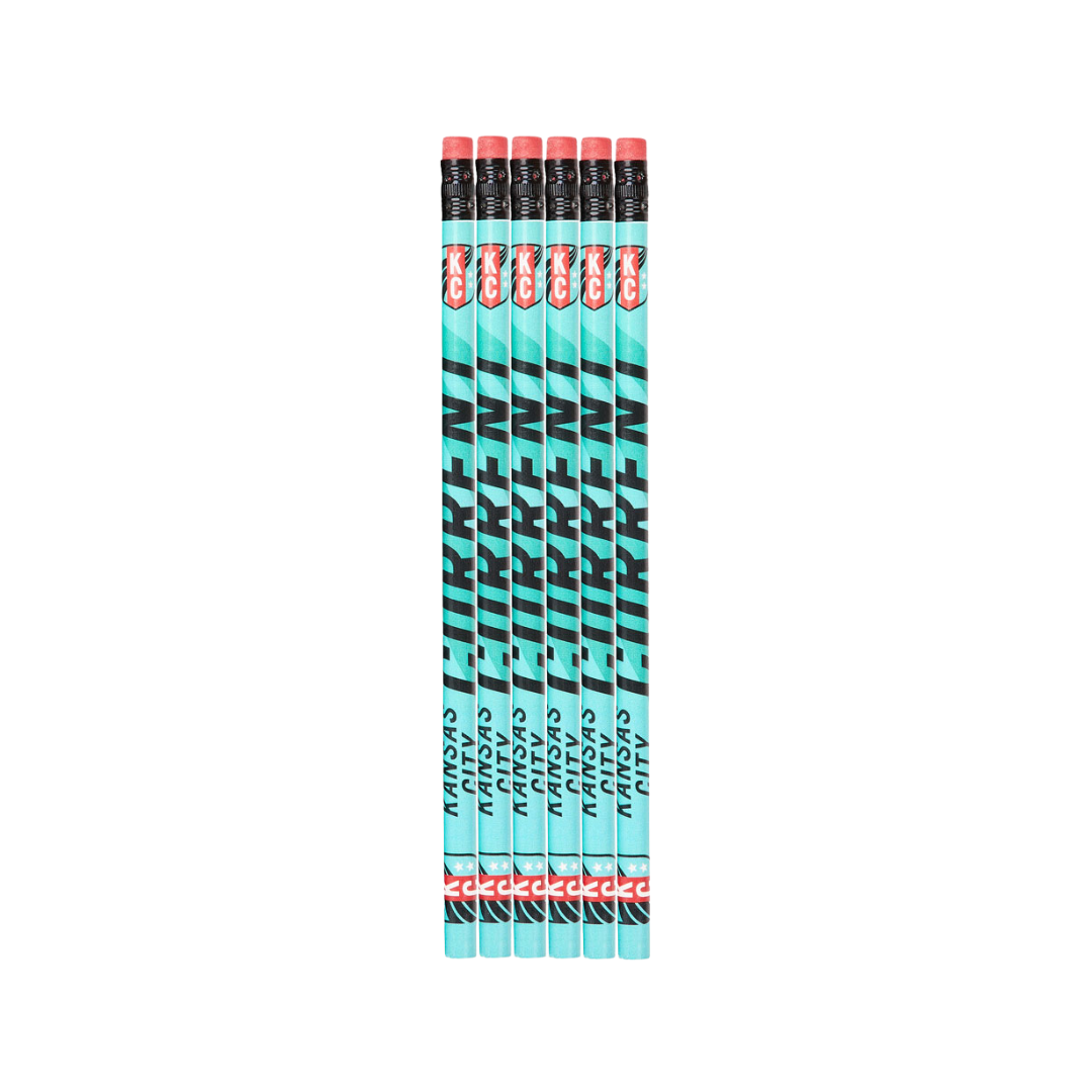 Take your school, work, or game-day notes in style with this 6-pack of KC Current pencils. Featuring a sleek teal wrap, bold "CURRENT" lettering, and the club’s signature crest, these pencils bring a pop of team pride to every jot and doodle.