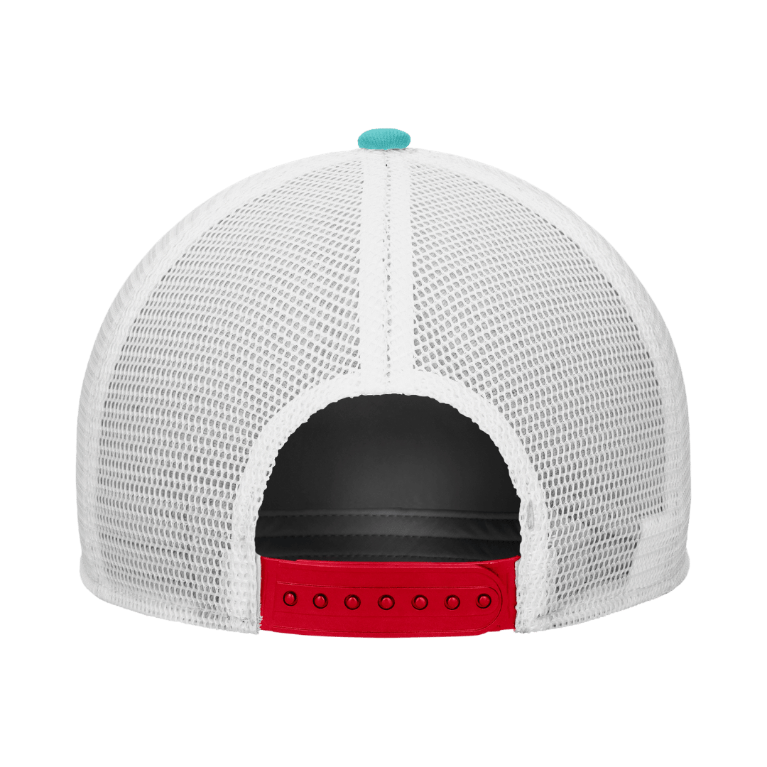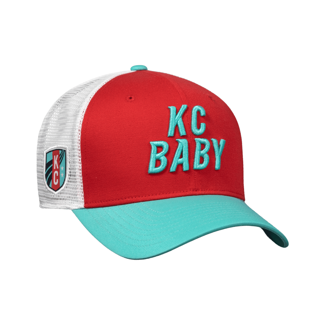 Show off your KC pride with the KC Baby Trucker Hat! This bold red, teal, and white cap features raised "KC BABY" embroidery on the front, a KC Current crest patch on the side, and a breathable mesh back for all-day comfort. The adjustable snapback ensures a perfect fit, making it the ultimate game-day or everyday accessory for any KC Current fan.