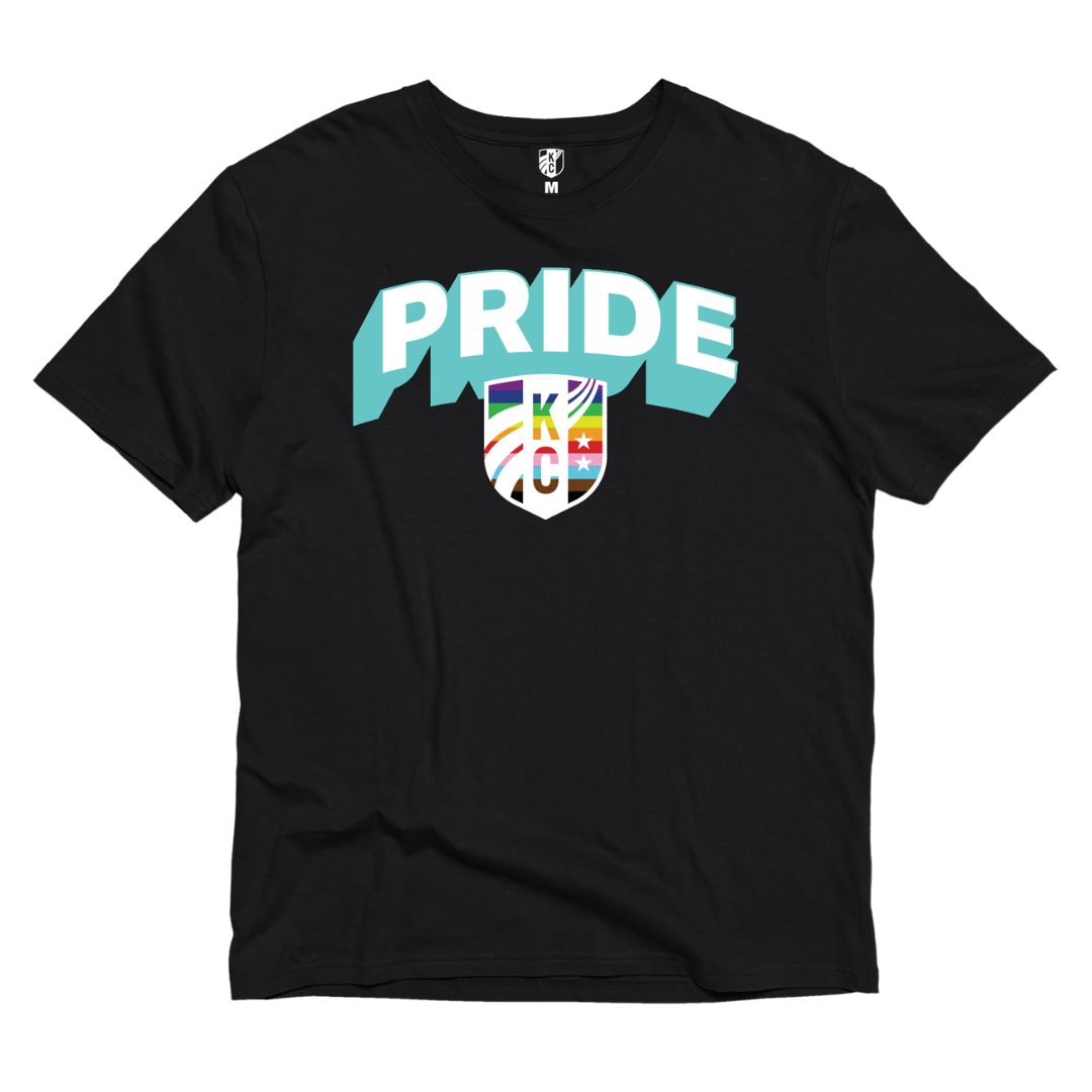 Make a statement that stands out. The KC Current Bold Pride Tee features oversized 3D-style "PRIDE" lettering in teal and white, paired with a multicolor KC Current crest inspired by the Progress Pride Flag. This sharp black tee is made for visibility, inclusion, and unwavering support.