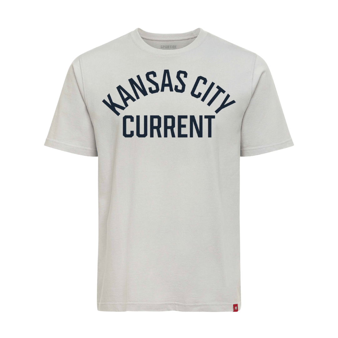 Show your KC pride in the classic KC Current Unisex City Arch T-Shirt. This ultra-soft, light gray tee features a bold, navy blue arched "KANSAS CITY CURRENT" graphic across the chest, echoing a vintage, athletic look. Perfect for match days, casual wear, or repping your favorite NWSL team in the city. Made for all-day comfort, this Kansas City Current fan gear is a must-have piece of everyday apparel. Available in versatile unisex sizing.