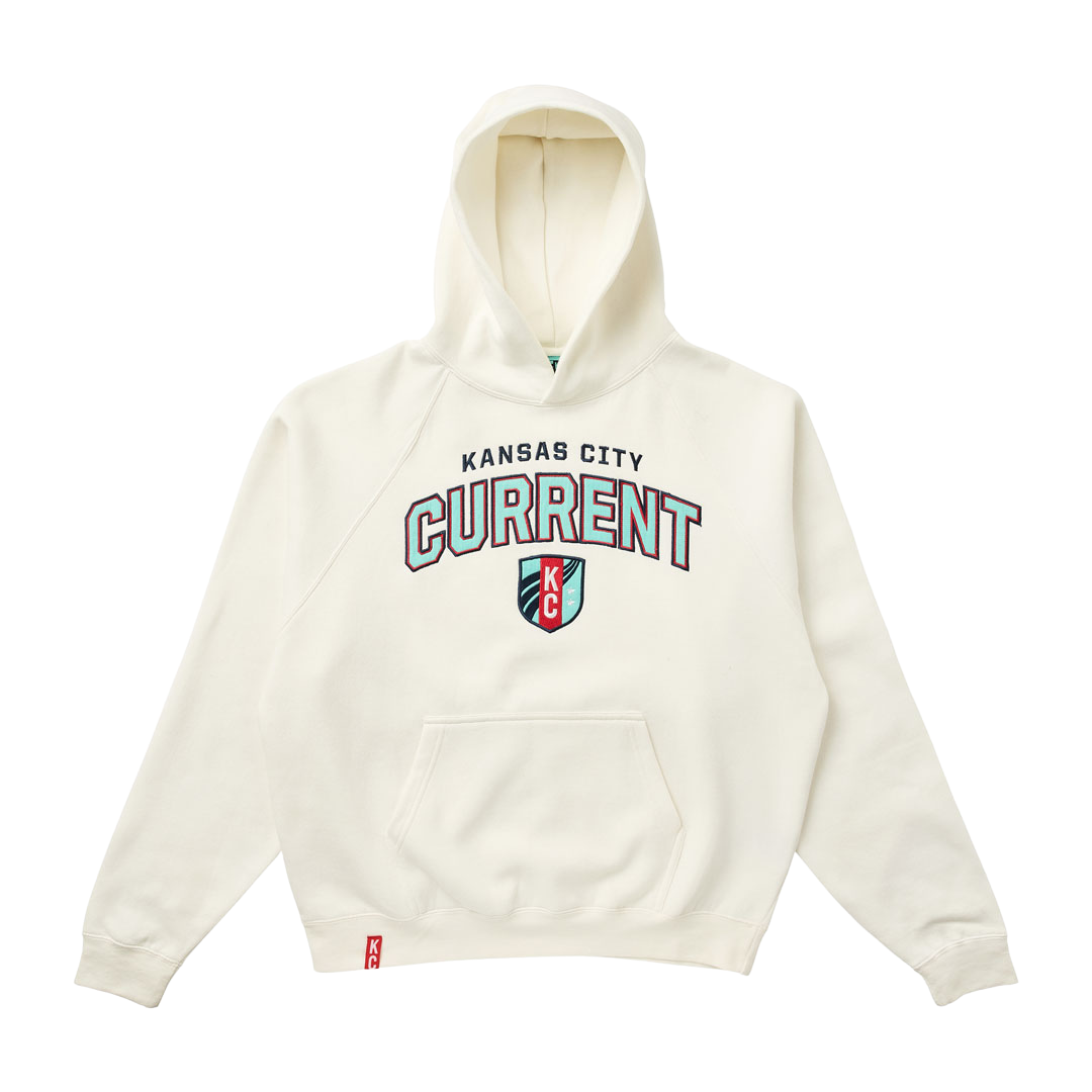 Stay warm and rep your squad with the KC Current Unisex Oversized Arch Cream Hoodie! Designed for a relaxed fit, this ultra-soft hoodie features a bold arched Kansas City Current graphic across the chest, making it a standout piece for any fan. Whether you're cheering from the stands or keeping it casual, this hoodie delivers all-day comfort and effortless team pride.