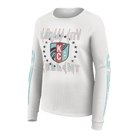 Light up the stands with this unique KC Current women's electric waffle knit long sleeve t-shirt. This white, waffle-knit top features a dynamic, distressed graphic on the chest with "KANSAS CITY CURRENT" text and lightning bolt details surrounding the team crest. The long sleeves are accented with teal stripes featuring the "CURRENT" wordmark. This shirt combines a cozy, comfortable feel with a high-energy design, perfect for cooler game days.