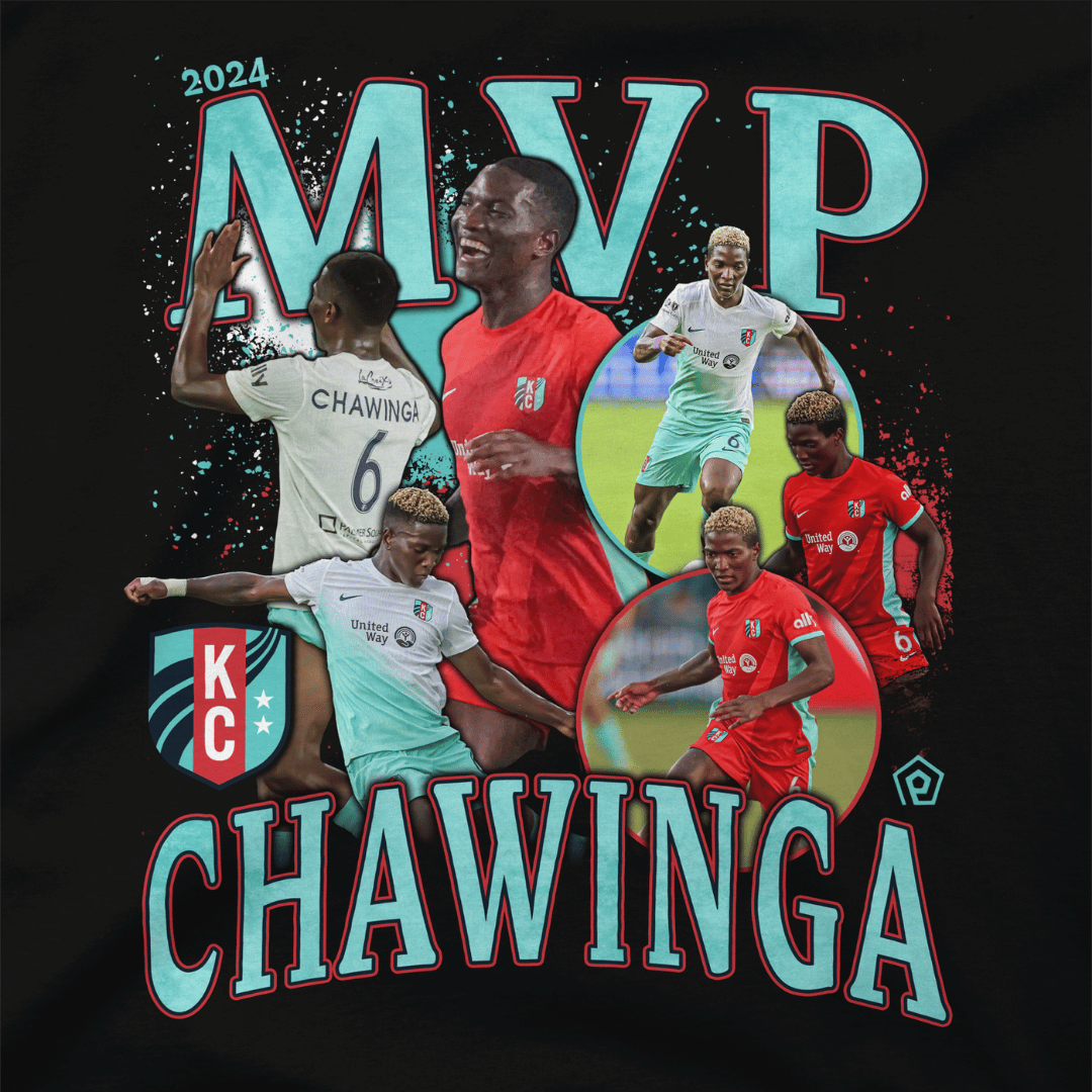 Celebrate Temwa Chawinga's historic MVP season with this bold 2024 graphic tee, featuring a dynamic collage of her unforgettable moments on the field. This is perfect for every KC Current fan. Don’t miss your chance to honor an icon—this limited-edition shirt is only available for a short time!