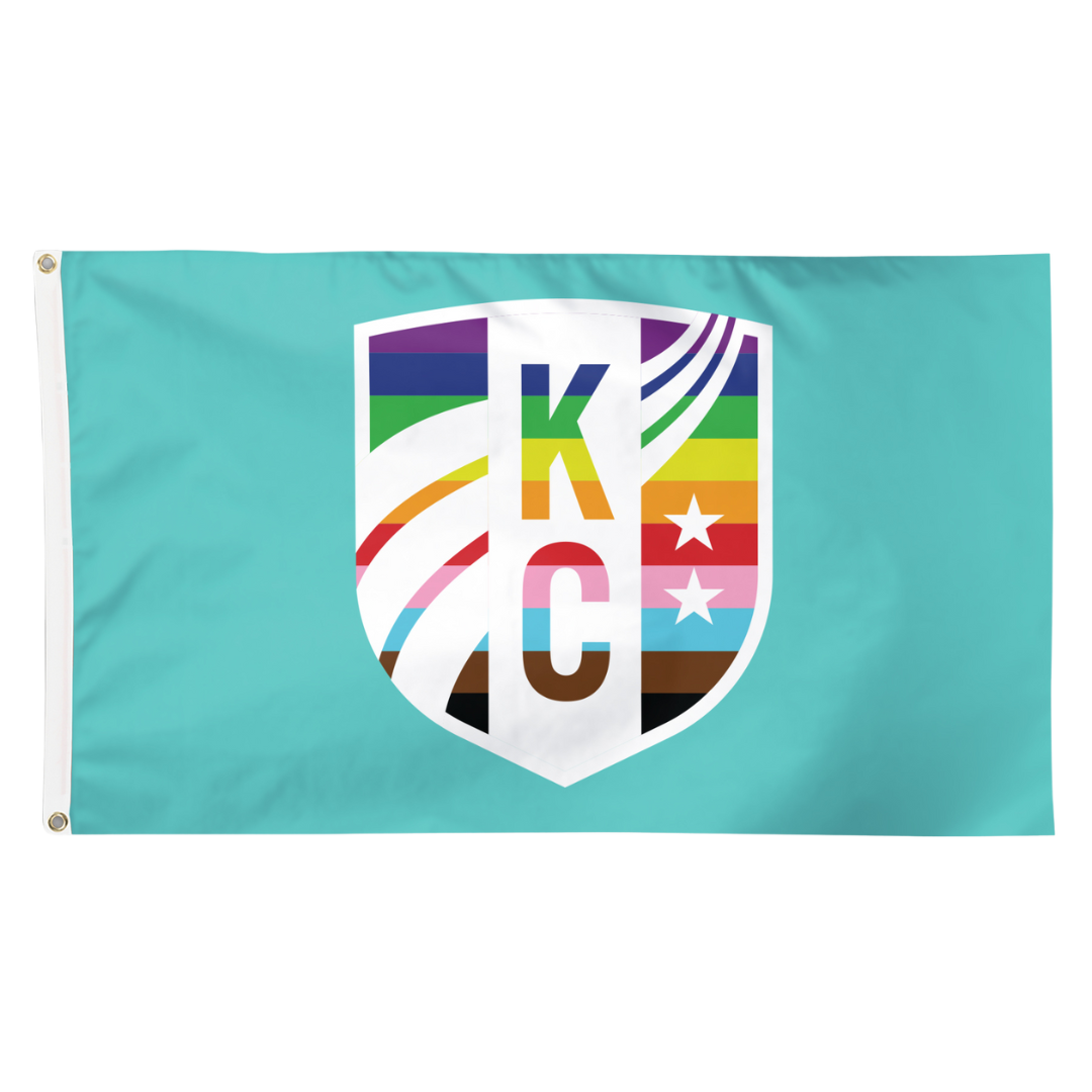 Display your support for both the Kansas City Current and the LGBTQ+ community with the KC Current Teal Pride Flag. This vibrant teal flag features the team's crest alongside a rainbow design, symbolizing inclusivity and team spirit. Perfect for game days, pride events, or as a standout piece in your home or office décor.