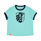 Sporty and standout, this ringer tee pairs contrast navy trim with the KC crest in bold. A throwback-inspired staple with a modern Current twist.