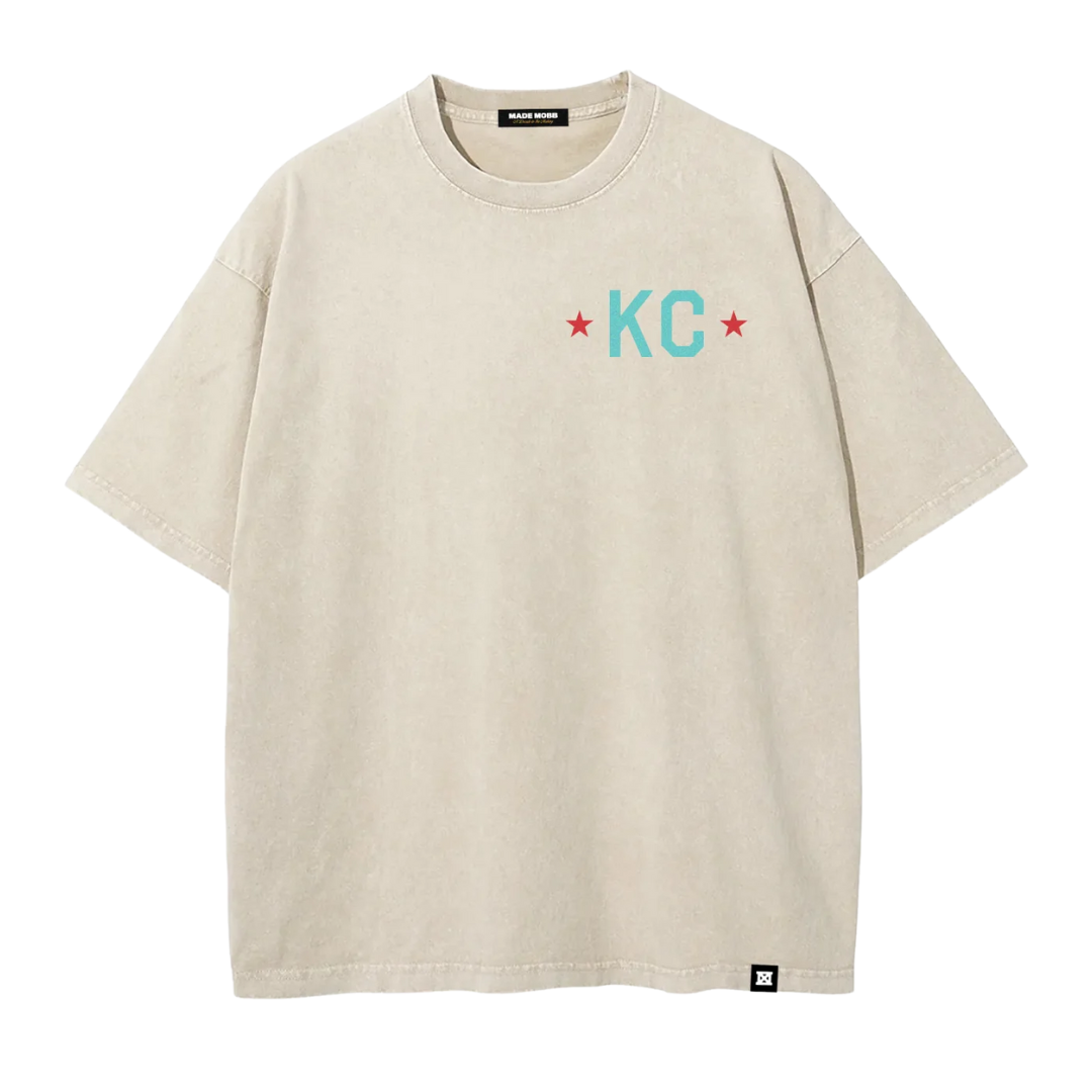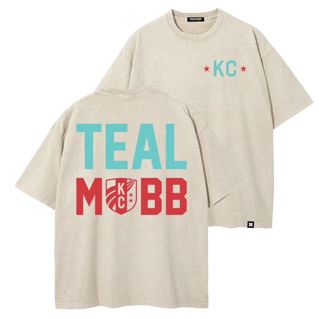 Teal Mobb, stand up. This neutral heavyweight tee combines MADE MOBB's iconic block lettering with a bold red KC Current crest—bringing the heat in a laid-back, street-ready way.