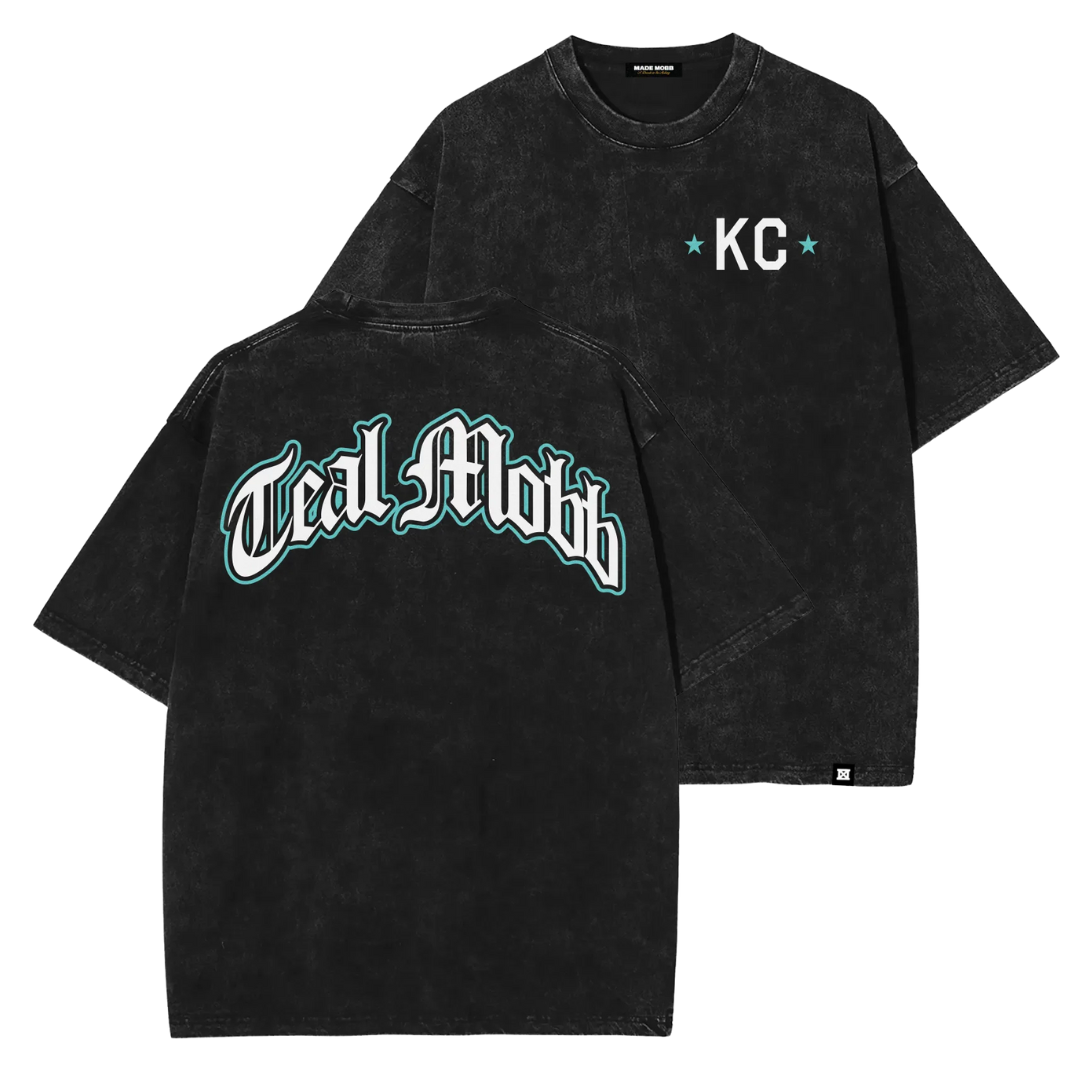 Classic streetwear meets club pride. This heavyweight black tee showcases “Teal Mobb” in stylized script with subtle teal outlines, giving it a clean, timeless edge perfect for repping KC on or off the pitch.