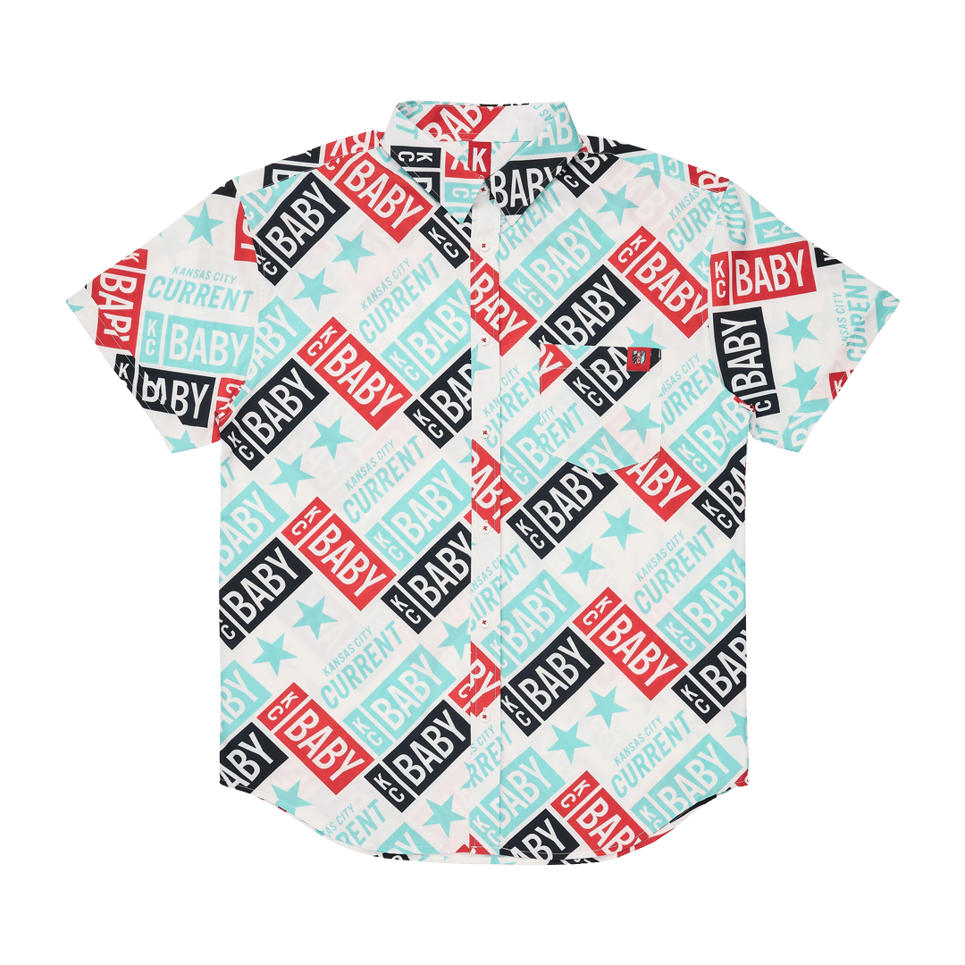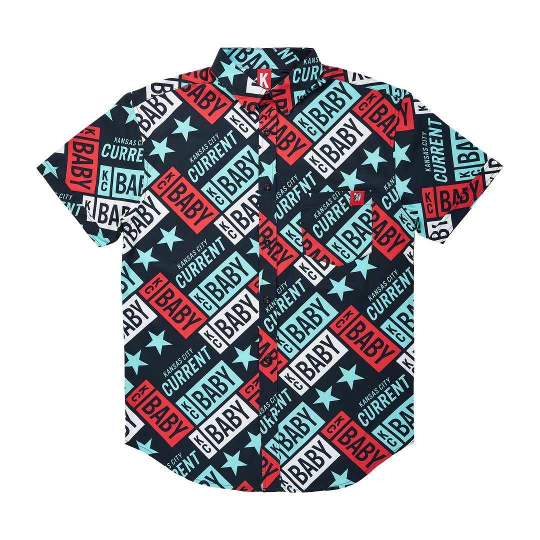 Show off your KC pride with the KC Baby Logo'd Short Sleeve Button-Up! This versatile and stylish shirt features a bold KC Current logo, making it perfect for game days, casual outings, or anytime you want to rep your team in style. Lightweight and comfortable, this button-up is designed to keep you cool while you cheer on the Current. Wear it your way and stay KC Baby proud!