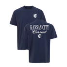 A classic staple for every supporter’s wardrobe. This navy blue tee features a clean, minimalist KC Current shield on the front chest and a bold "Kansas City Current" script across the back. Soft, breathable, and built for match day, it’s the perfect way to represent the club whether you’re at the stadium or on the go.
