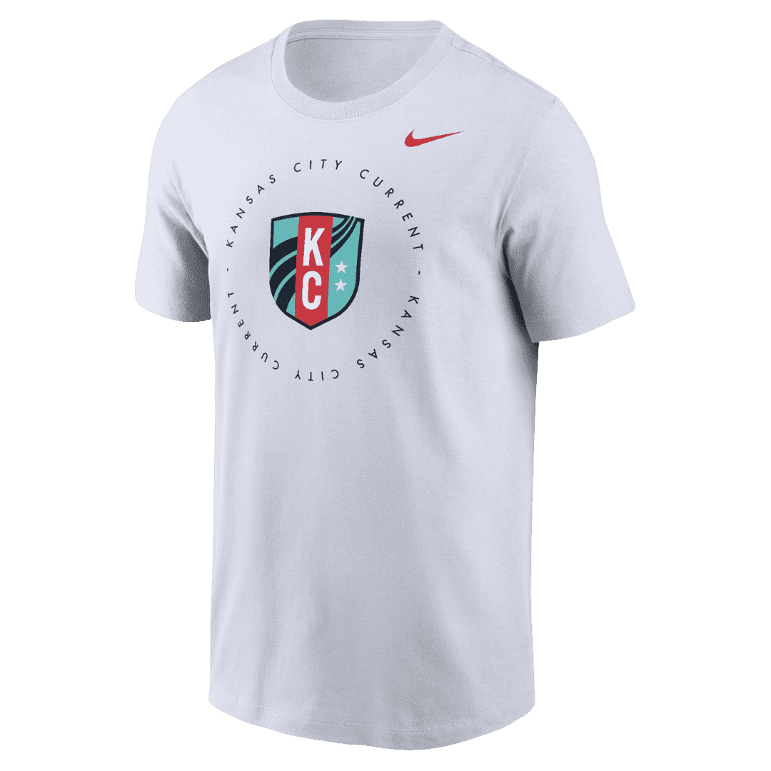 Show your team pride with the Nike KC Current Unisex White Circle Tee. This clean, white tee features a striking circle graphic with the KC Current logo, offering a modern and stylish way to support your team. Crafted from soft, breathable fabric, it provides all-day comfort and a great fit.