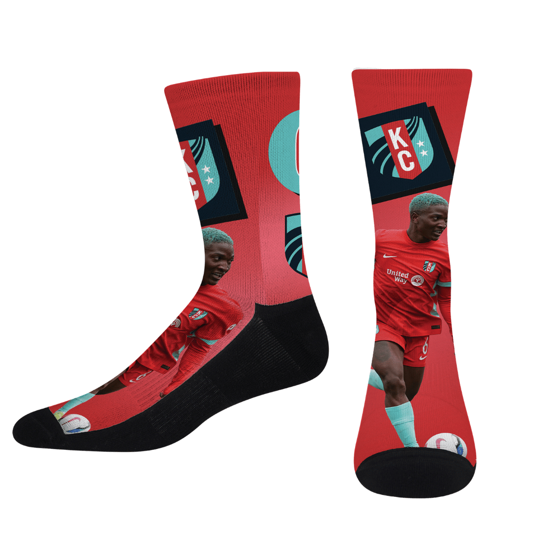 Step into game day energy with the Temwa Chawinga 304s Shape Shifter Socks. Featuring dynamic action shots and bold KC Current visuals, these socks are made to stand out just like Temwa on the pitch.