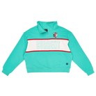 Stay bold in the KC Current Women’s Colorblock Iconic Quarter-Zip Pullover. Featuring a vibrant teal body, crisp white chest stripe, and striking red accents, this retro-inspired quarter-zip blends comfort and team pride. The KC Current crest sits proudly on the left chest, while “CURRENT” stretches across the front in standout block lettering. Perfect for layering on match day or repping your squad around town.