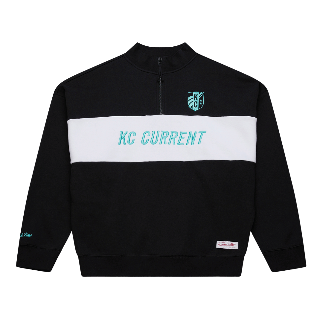 Take your KC Current pride to the next level with the KC Current Women's Teal Accent Quarter-Zip. Designed for versatility and comfort, this sleek quarter-zip features subtle teal accents that highlight your team spirit. The lightweight, breathable fabric makes it perfect for layering, whether you're at the match or on the move. With a relaxed fit and a stylish stand-up collar, this pullover is a must-have for any KC Current fan.