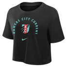 The KC Current Women's Nike Black Crop Tee combines sporty style with a modern fit. Featuring a bold KC Current logo on the front, this black cropped t-shirt is made with soft, breathable fabric to keep you comfortable all day long. Designed by Nike, it's perfect for casual wear or game days, offering a trendy yet athletic look.
