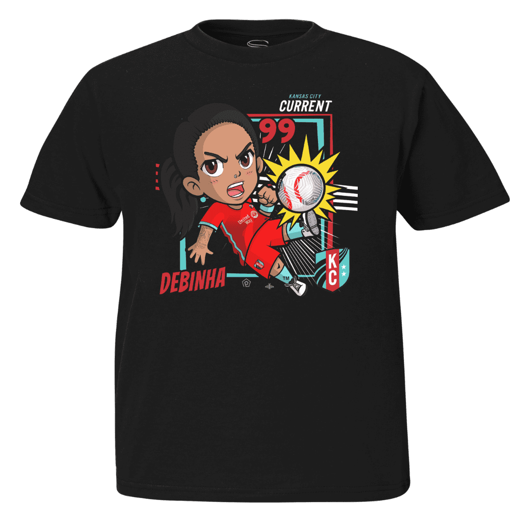 The Debinha Youth Chibi Tee is a stylish t-shirt featuring a digital print graphic of player Debinha in a cute chibi design. This youth-sized tee is both soft and comfortable. It's perfect for young fans to showcase their support for Kansas City Current in playful fashion.