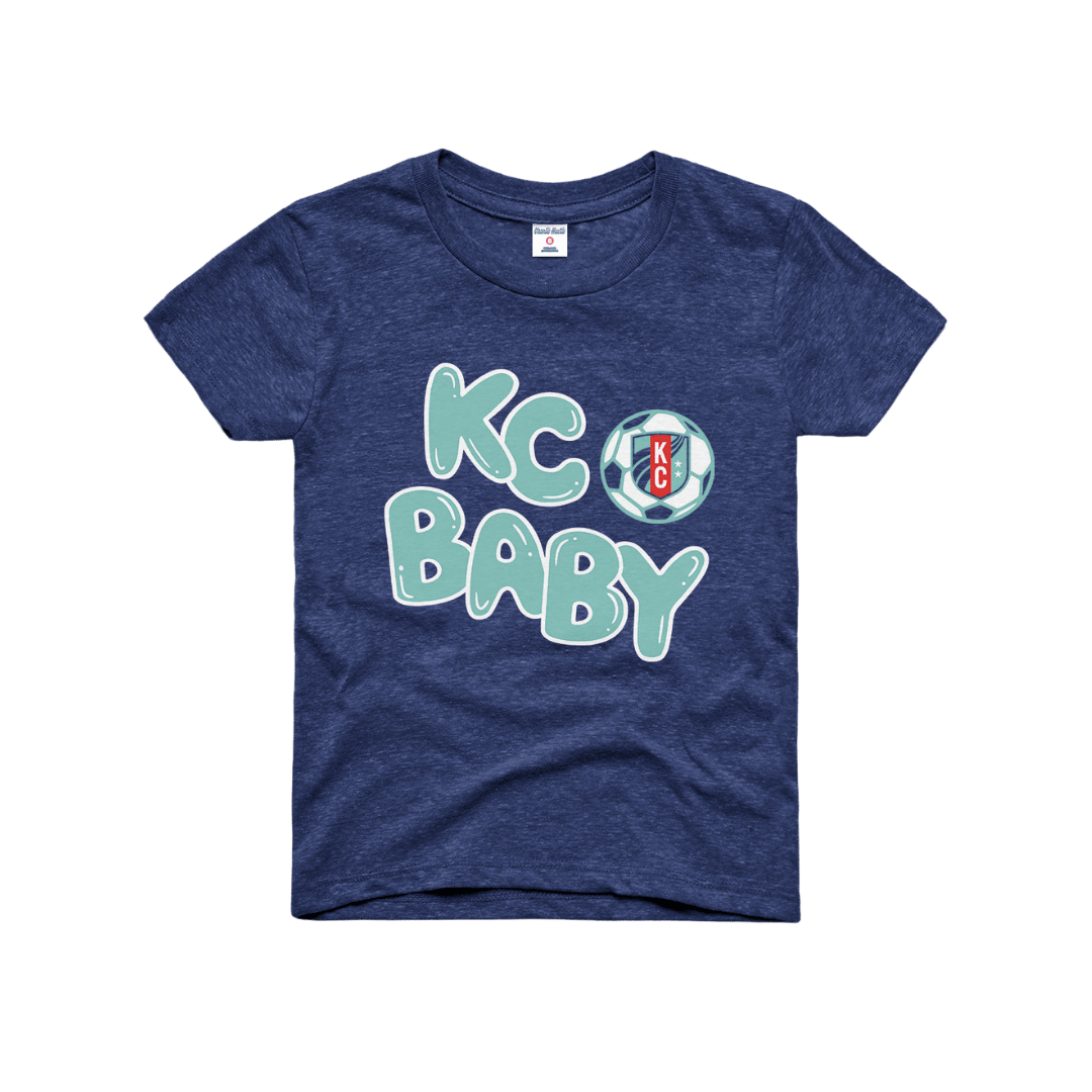 Cute, fun, and full of KC Current spirit! The KC Current Youth Bubble KC Baby T-Shirt features bubbly block lettering and a custom soccer ball graphic with the team crest at its core. Perfect for kids who love to cheer loud and dream big.