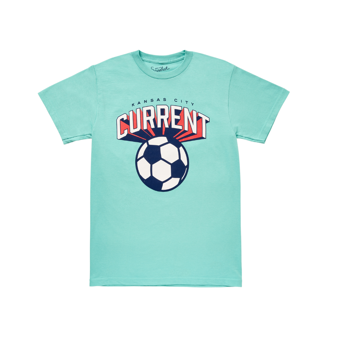 Let young fans showcase their Kansas City Current pride with the Youth Soccer Ball T-Shirt. Featuring a bold soccer ball graphic on a vibrant teal background, this tee is crafted by Sandlot Goods for ultimate comfort and style. Perfect for game days, school, or everyday adventures, it's an essential piece for any budding KC Current supporter.