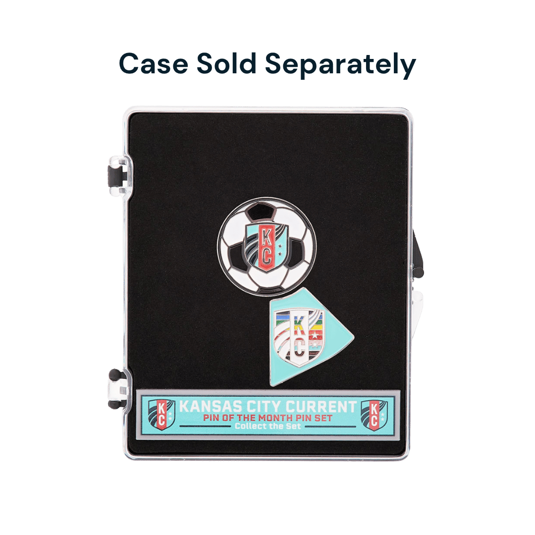 To start your KC Current Pin of the Month collection, you'll need to purchase the official collector case. The case comes with the exclusive soccer ball center pin, which anchors the full set as you collect each monthly design.