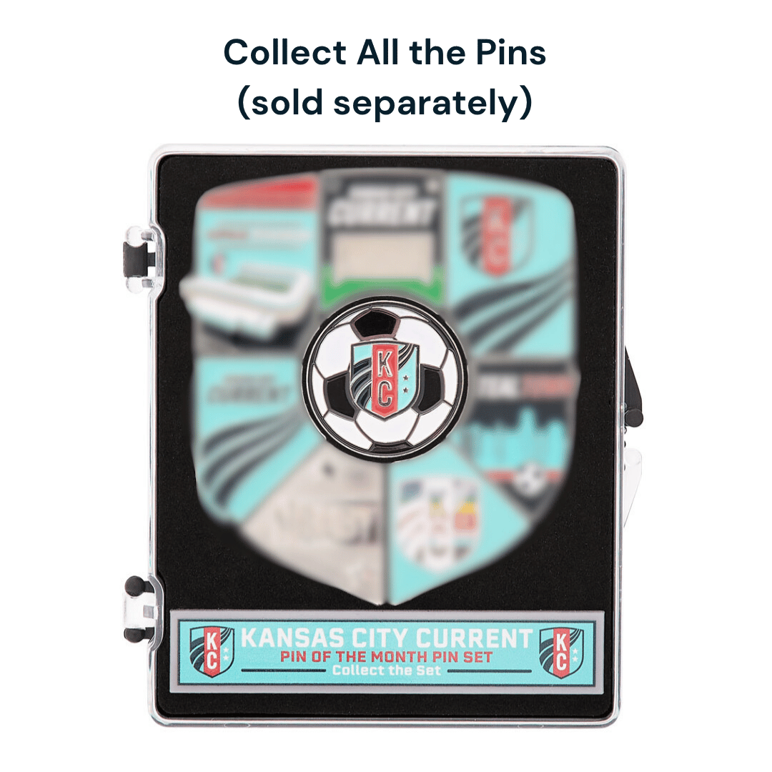 Start your collection the right way with the KC Current Pin Display Case! This durable, velvet-lined collector’s case holds the full 2024 Pin of the Month set and comes with an exclusive Soccer Ball Crest Pin you can’t get anywhere else.